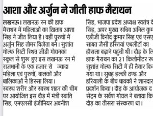 A large number of participants participated in the third edition of Lucknow Run on Sunday. Arjun Singh Tomar stood first, Dipan and Raghuvendra Singh stood third in the men’s section of the 21km Half Marathon, while Asha Singh was first, Bindu second and Kunika third in the women’s section. Ranked. In the 10 km men’s category Suhan Limbu stood first, Ashwin Rai second and Rishabh Suba third, while in the women’s section Suman first, Pooja Nishad second, and Rachna Joshi got the third position.